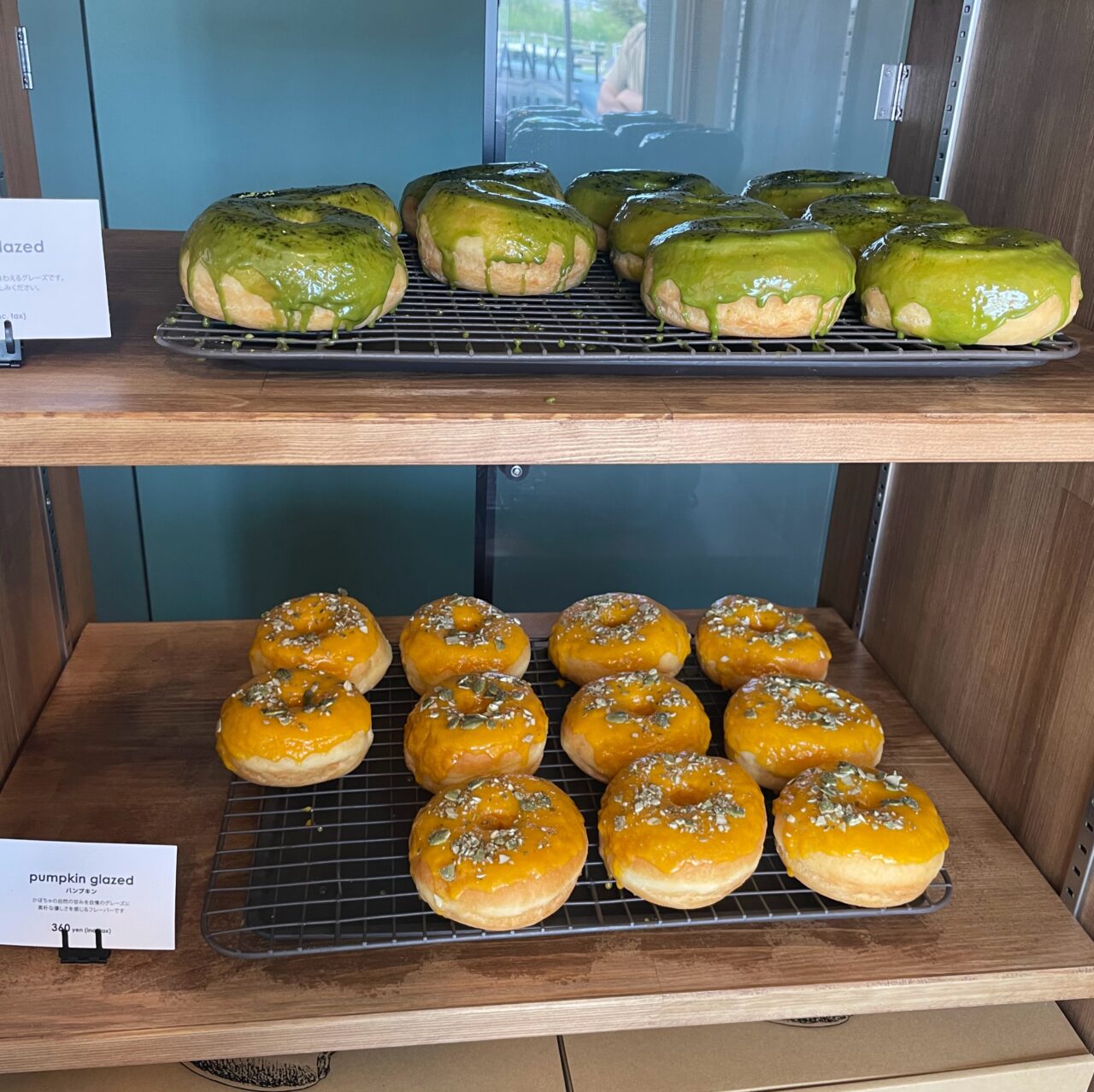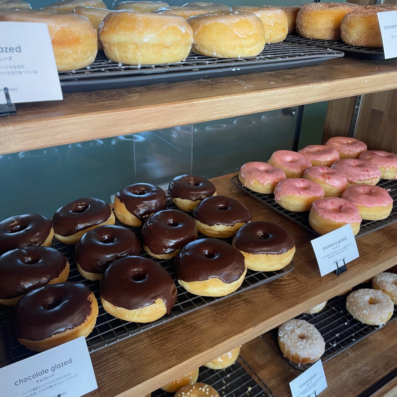 オープン初日から連日行列ができるほどの大盛況で、現在は定番の「クラシック・グレーズ」「チョコレート」「キャラメル・ソルト」「チョコカスタード」「抹茶カスタード」などをはじめ、「パンプキン」「抹茶」の季節限定フレーバーも含めた12種類が販売されています。