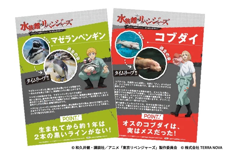館内各所に設置された生きものに関する解説パネルにて、生きものの生態のほか、東京リベンジャーズのストーリーのカギとなる「タイムリープ」にちなんで、生きものの過去の姿(成長前)について紹介します。