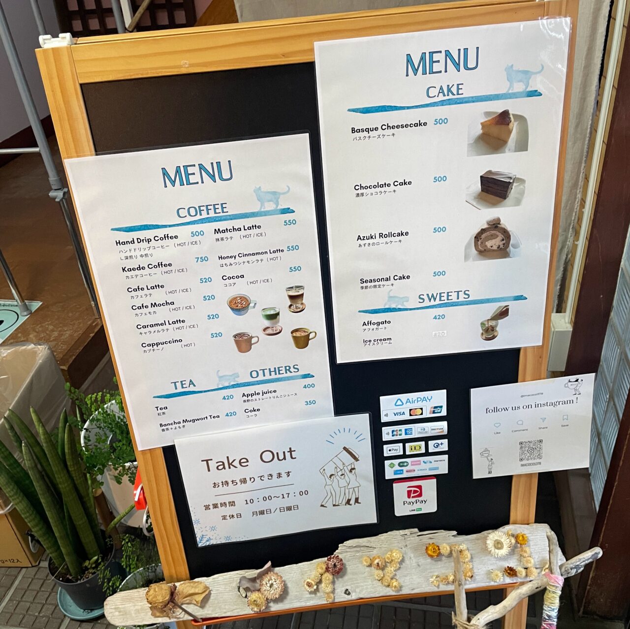 店内では、コーヒーや紅茶などのドリンクのほか、津南町にある菓子店「ママのおやつ」のこだわりケーキが楽しめます。ケーキは季節ごとにラインナップが変わることもあります。