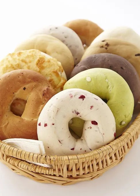 「ナチュラルチーズ」「ストロベリー&クランベリー」などの人気商品に加えて、これからの季節にぴったりのスイーツベーグル「エスプレッソ&チョコ」「ビターチョコ&ココア」「ダブルキャラメル」「抹茶&ホワイトチョコ」も並びます。