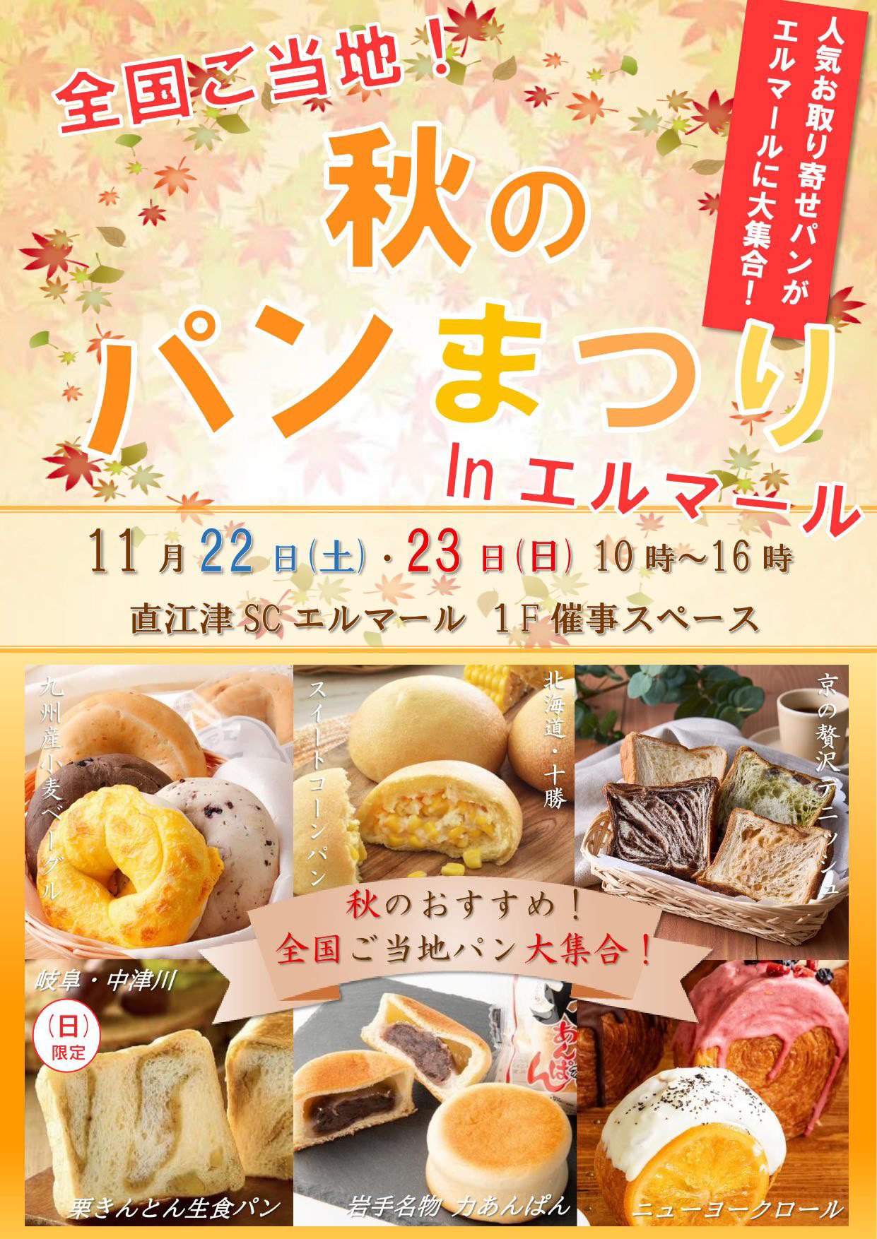 上越市の直江津ショッピングセンター エルマールにて、2025年11月22日(土)・23日(日)の2日間、「全国ご当地!秋のパンまつり in エルマール」が開催されます。