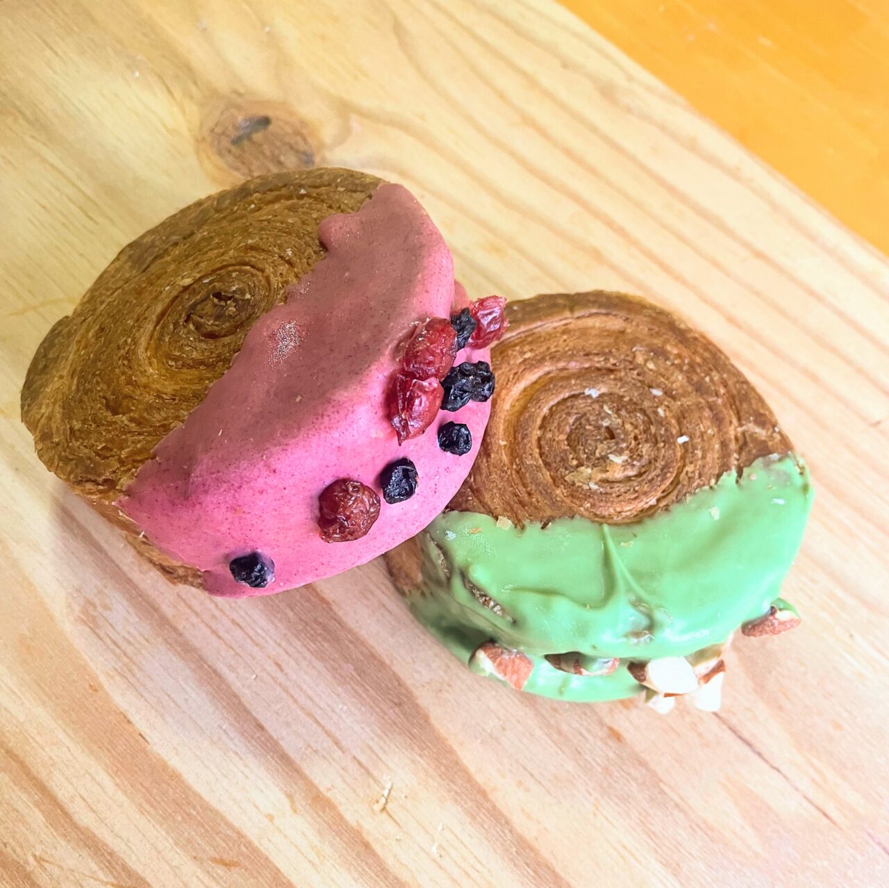 SNSで「映えるクロワッサン」として人気急上昇中の「ニューヨークロール」が登場します。切り株のように焼き上げたクロワッサンに、チョコレートやクリームをたっぷり合わせた、見た目も味もこだわり満載のスイーツ系クロワッサンです。