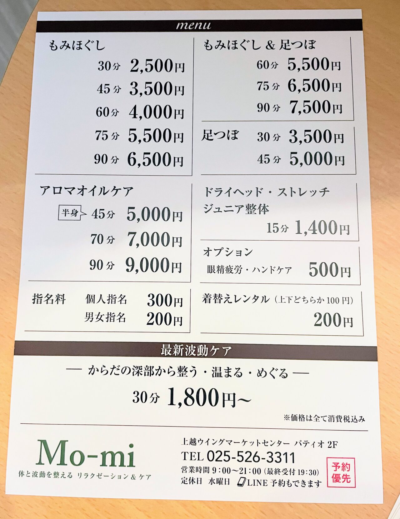 【上越市】忙しい毎日に癒しのひとときを。パティオにリラクゼーション&整体サロン「Mo-mi(モミ)」がオープン!