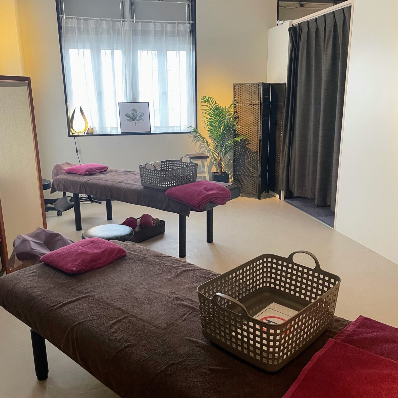 服のまま施術を受けられるほか、着替えレンタルもあるため、買い物ついでにも気軽に立ち寄ることができます。個室も用意されており、空いていればプライベート空間でリラックスした施術を受けられます。