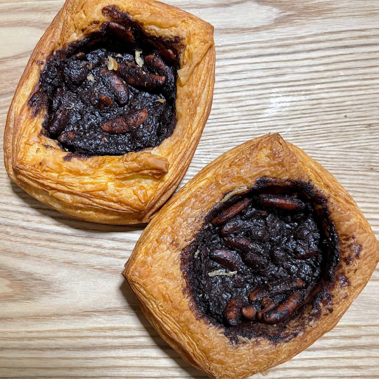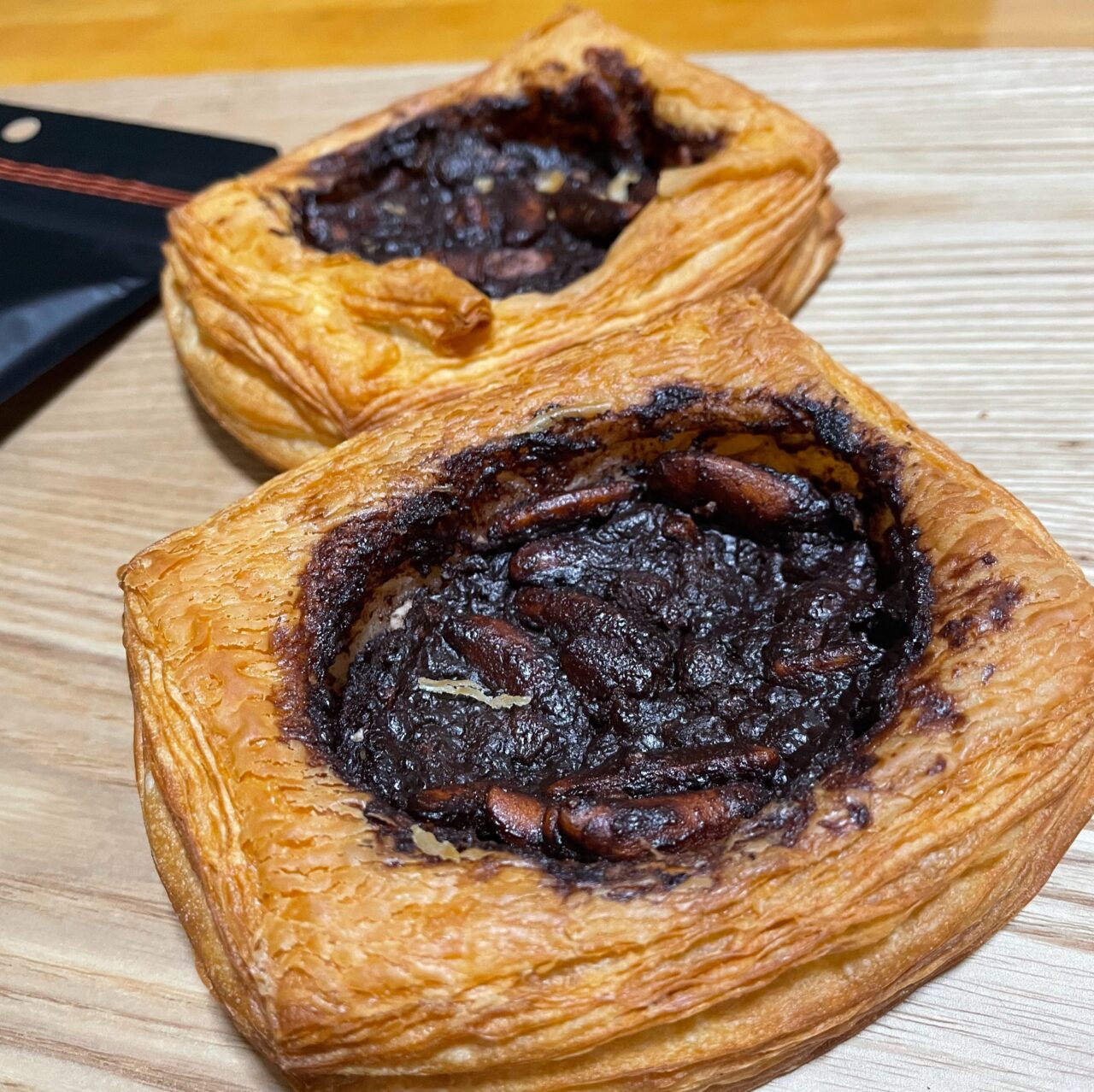 「柿の種チョコクリームデニッシュ」は、自家製のデニッシュ生地に「パンにのせる柿の種のオイル漬け チョコ味」がたっぷりと乗っています。