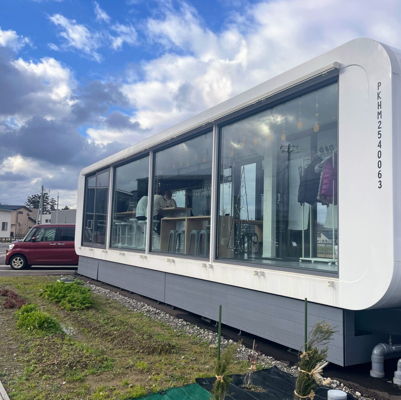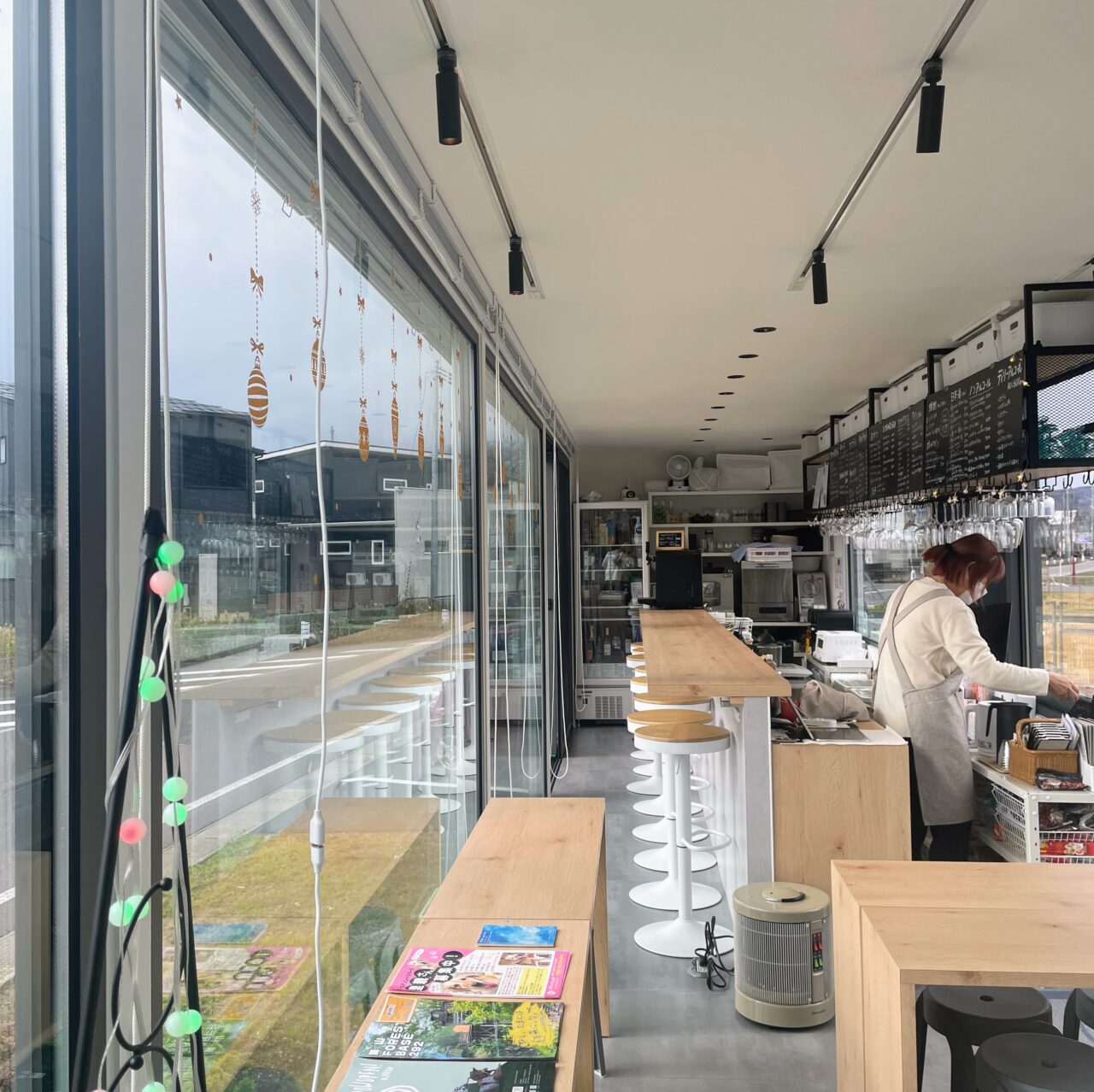 お店はスタイリッシュなトレーラーハウスを活用したつくりで、片側一面がガラス張りになったおしゃれな空間です。インテリアコーディネーターでもあるオーナーさんが、「自分たちの居場所づくり」「第二の人生のスタート」として立ち上げたそうです。