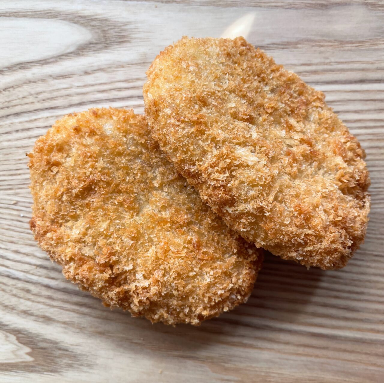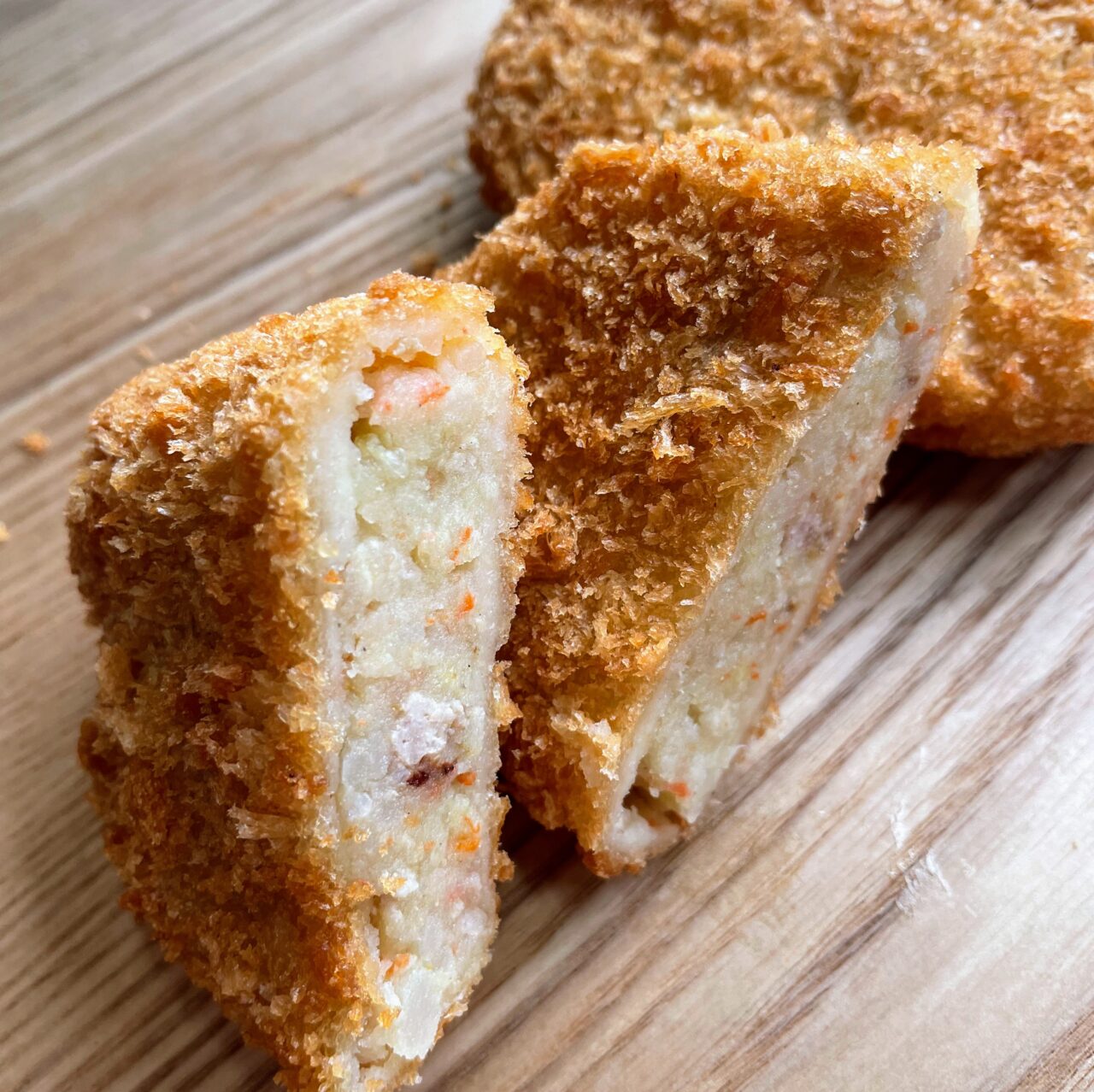 定番のコロッケは、昔ながらの製法を大切にしながら、旨味を引き立たせるためにほんのりカレー粉をプラスしているのがポイントだそうです。口に入れた瞬間にふわっと香るカレーの風味がアクセントになり、飽きのこないシンプルな味わいです。