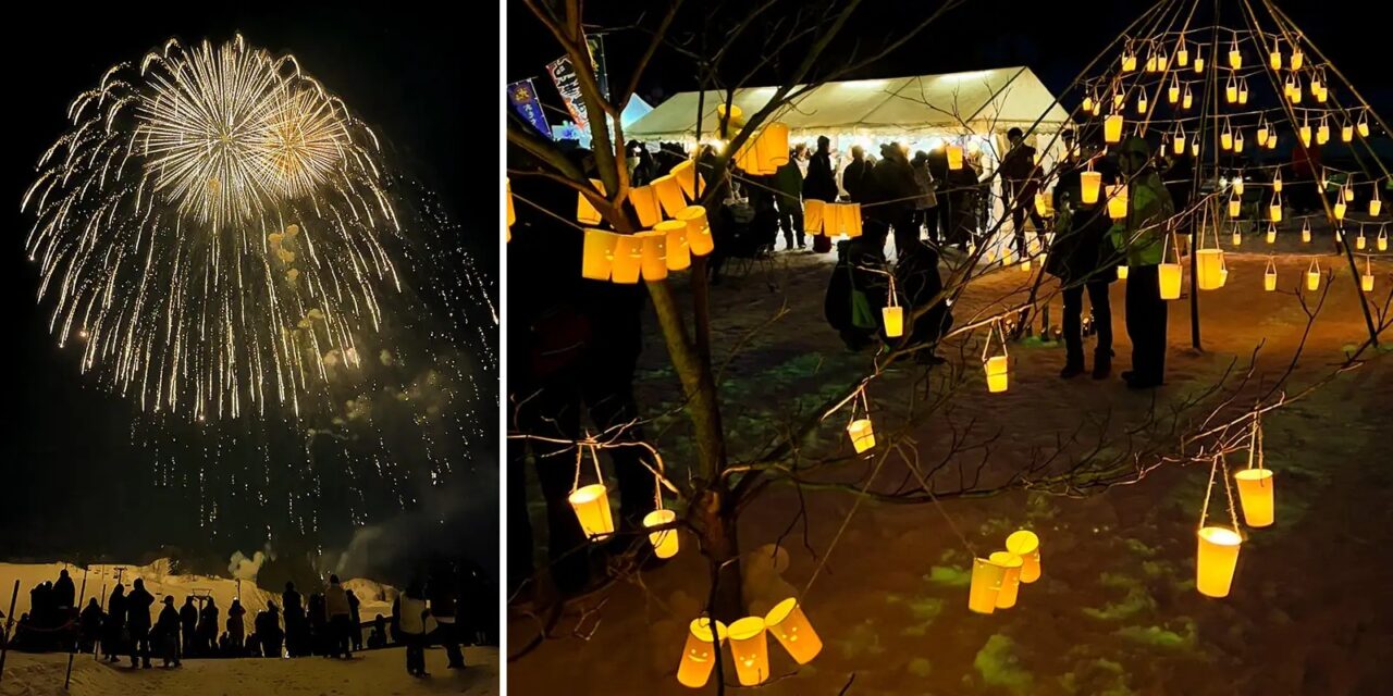 雪国ならではの幻想的なイベントが開催されます。可愛らしい雪像とキャンドルの灯りが白銀の世界をやさしく照らし、打ち上げ花火や屋台など見どころも満載です。