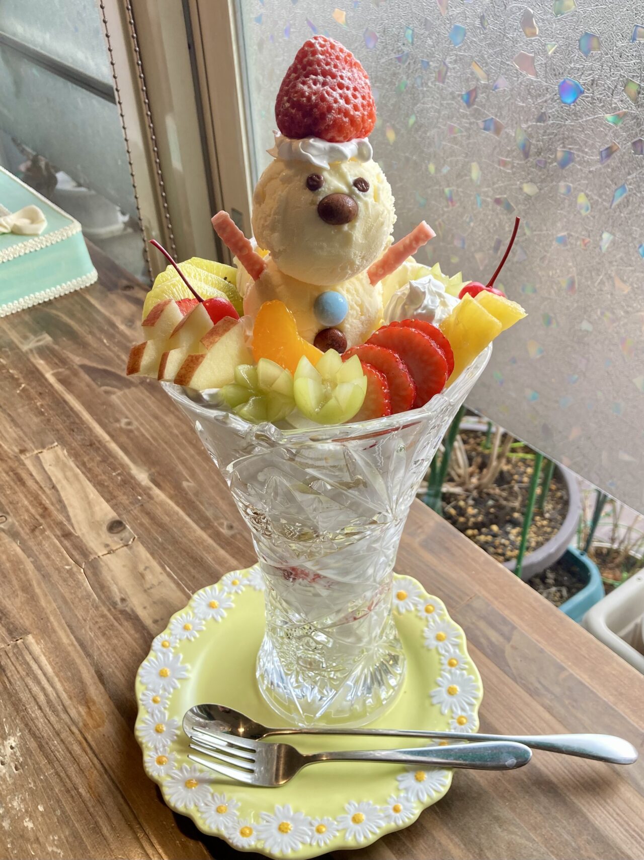 ・喫茶あじさい「雪だるまフルーツジャンボパフェ」