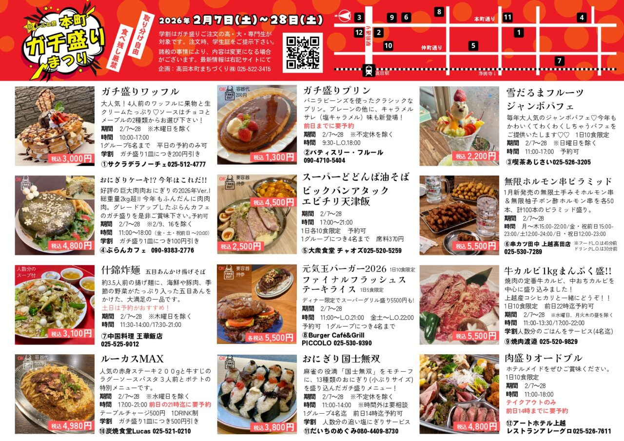 【上越市】今年は12店舗が参加。2/7〜28 高田本町商店街にて「祝・レルヒ祭 本町ガチ盛りまつり」開催中!