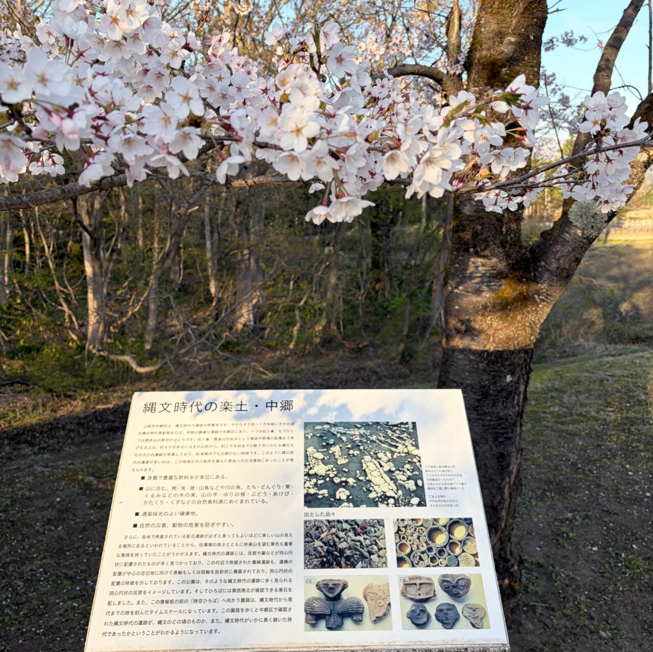 【上越市】まだまだお花見が楽しめる! 縄文ロマン漂う「泉縄文公園」の桜が見頃を迎えています