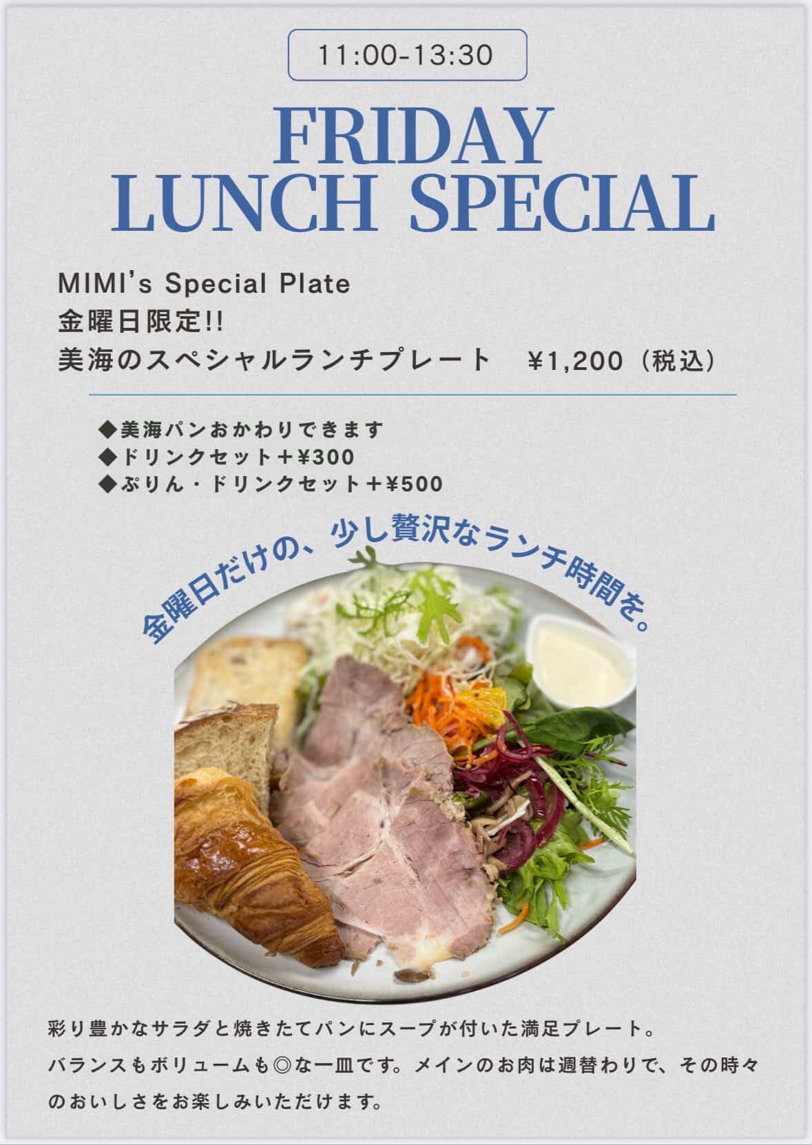 金曜日だけの特別メニュー「美海のスペシャルランチプレート」も注目です。