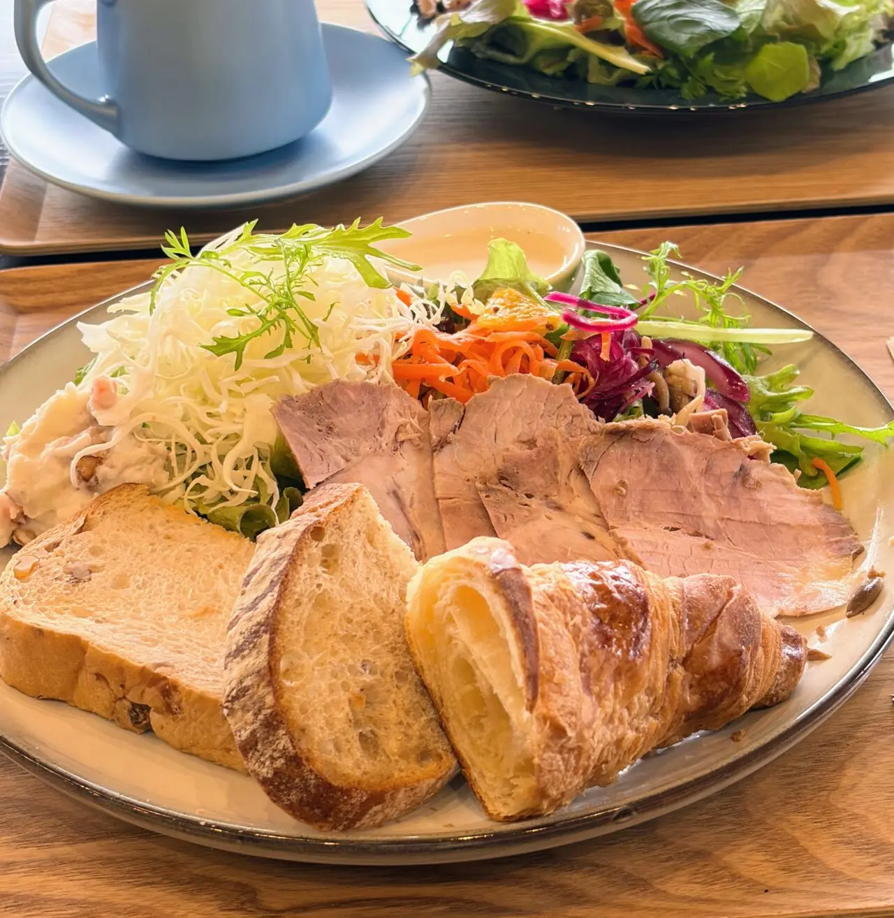 彩り豊かなサラダに焼きたてパン、スープが付いた満足感のある一皿で、メインのお肉は週替わりでその時々の美味しさが楽しめます。さらにパンがおかわりできるのもうれしいポイントです。